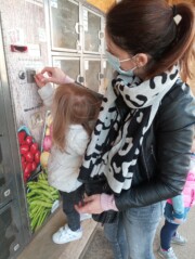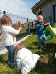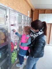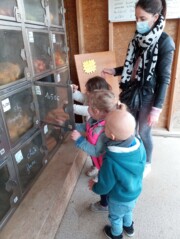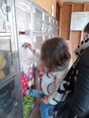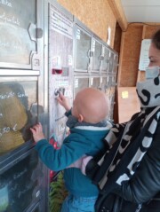 Nous nous sommes arrêtés aux casiers de Niergnies ! Que c’est rigolo d’observer les légumes dans leur casier vitré, les nommer, les découvrir, les chercher…