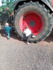 Après avoir longuement observé le tracteur de Damien de la ferme Douhailly ! Un engin qui met en éveil notre curiosité !