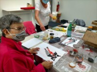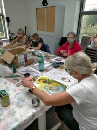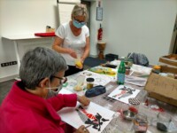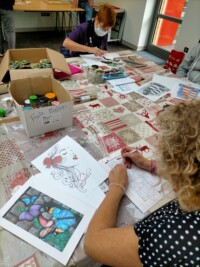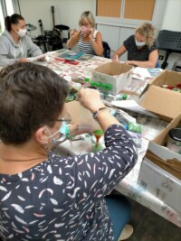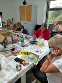 En ce moment, le groupe élabore des tableaux réalisés en sable. Aussi beaux que réalistes ces tableaux sont créés d’atelier en atelier avec minutie et surtout … beaucoup de convivialité !