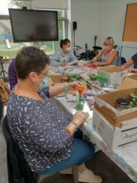 Les petits doigts créatifs de l’atelier des Faits Maison s’impliquent et participent aux actions d’Octobre Rose. Ce groupepe autonome porté par des bénévoles (Danuta, Bernard et Marie-Christine) se retrouve chaque mardi pour créer, peindre, bricoler…autour d’activités manuelles.