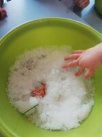 - Développer son langage : »c’est froid », « ça fond », « la neige »!