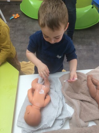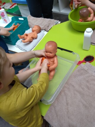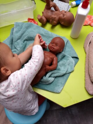 C’est le moment de développer son langage et de prendre conscience du schéma corporel ! Le lavage des poupées, un jeu pas si anodin !