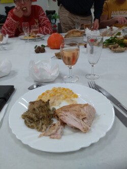 Ils avaient organisé ce repas partant de l’initiative d’inviter une amie américaine de Ghénhaëlle qui se trouvait seule en France pour raisons professionnelles. À cette époque aux Etats-Unis c’est un moment festif en famille. Ni une ni deux le Club Anglais s’est mobilisé, ils ont concocté un petit festin qu’ils ont pu déguster tous ensembles. Cette démarche fut également l’occasion de découvrir cette fête culturelle typique des US.