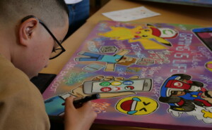 Cette semaine, nos jeunes ont libéré leur créativité aux côtés d’Artman, notre intervenant graffeur, pour réaliser une œuvre unique