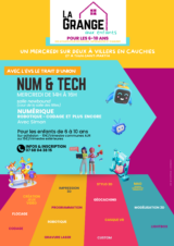 Num&Tech : Un atelier dédié à la culture et à la création avec des machines (Imprimante 3D, création graphique, robotique, graveur laser…). Alors n’hésitez pas à pousser les portes de la Grange pour découvrir ce lieu de création et ses machines numériques !