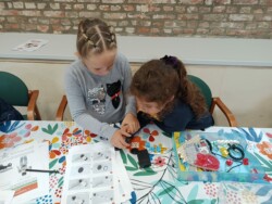 Au programme des derniers ateliers de la Gr@nge Aux Enfants : jeux de connaissance, jeu dans la peau d’un robot, création d’un dessous de verre pour la fête des grands-pères et construction d’un premier robot avec des combats et des courses de robots.