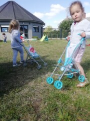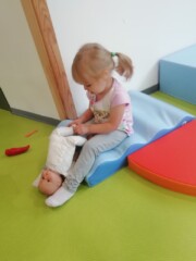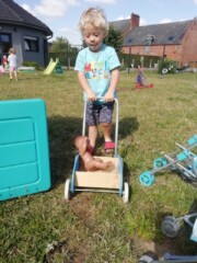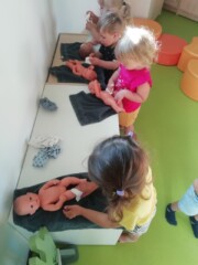Fille ou garçon, le jeu avec la poupée apporte les mêmes bénéfices ! À la crèche tous les jours nous pouvons ainsi, soigner, promener, donner le bain, changer ou habiller « les bébés » !