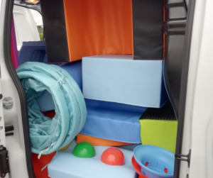 Il permet aux animatrices de transporter les différents modules, caisses d’activités et des parcours moteurs pour les familles ou les assistantes maternelles. Une proximité vraiment nécessaire dans ce contexte sanitaire compliqué où le maintien du lien est essentiel…