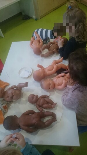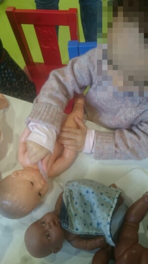 Faire un café aux taties, soigner sa poupée, la mettre au lit, épingler le linge,… nos petits séraphins adorent ça !