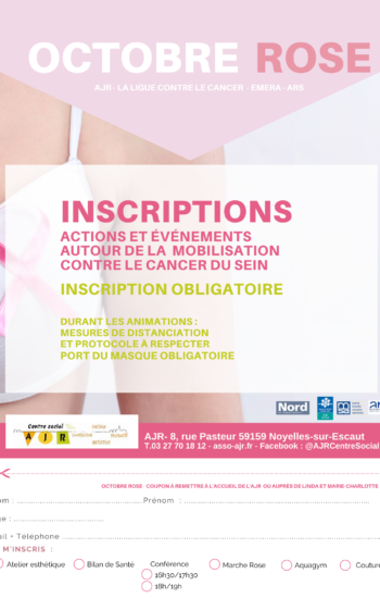 Inscription obligatoire auprès de l’accueil de l’AJR / 03 27 70 18 12. ou auprès de Linda et Marie-Charlotte.