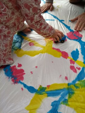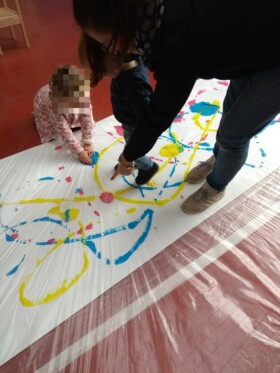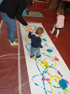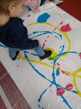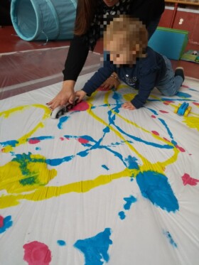 Les ateliers Parents Grands-Parents Enfants sont itinérants ! Ce jeudi matin à la salle polyvalente de Fontaine Notre Dame les enfants ont pu expérimenter la peinture propre ! L’Eveil des sens par le toucher, les textures avec les doigts ou avec de petits jouets ! Du plaisir sans se salir !