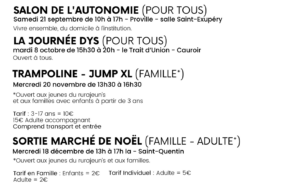Ne manquez pas l’occasion de participer à nos activités ! Consultez dès maintenant le programme complet et inscrivez-vous pour faire partie de nos événements.