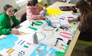 - Pour finir les jeunes ont commencé un projet autour des Jeux olympiques. Ils font une fresque ludique avec des questions autour de l’histoire des Jeux olympiques. 😊