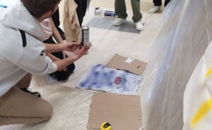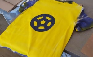 Ils ont pu réaliser leur propre maillot en réfléchissant d’abord au design. Ensuite, ils ont pu bomber le t-shirt avec les deux couleurs. Et pour terminer ils ont effectué le flocage de leur t-shirt.