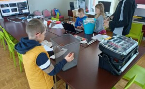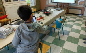 Puis en lien avec de la semaine de l’environnement, un atelier sur la création d’une poubelle connectée a eu lieu. Au programme de cet atelier, découverte du makey makey et découverte de la programmation sur Scratch avec la réalisation d’un jeu de basket.
