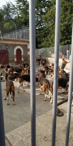 11h30 : nous ne manquons pas de nous rendre au chenil occupé par une centaine de Chiens (de races Français blanc et noir et Anglo-Français) pour assister au repas qui leur est servi chaque jour à la même heure » la soupe des chiens ».