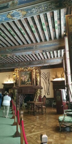 Après le repas nous partons à la découverte de ce curieux château et suivons le parcours de visite qui nous fera traverser les différents salles , galeries, salons ou encore la salle d’armes meublées et décorées.
