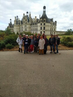 Après un trajet sans encombre assuré par nos 2 bénévoles Jean-Pierre et Jean Claude ! Nous voici arrivés devant le plus vaste et le plus impressionnant des châteaux de la Loire : CHAMBORD . Nous voilà plongé au temps des règnes de François 1er ou encore de Louis XIV en déambulant dans les escaliers, terrasses, grandes salles chargées d’histoire. Sans oublier les extérieurs : Cours, jardins à la Française et potager.
