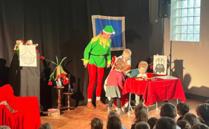 Ce mercredi 13 décembre, l’AJR (et plus particulièrement Agathe, référente adultes familles et Audrey, responsable Relais Petite Enfance et Référente parentalité) a organisé un spectacle « Enquête chez le Père Noël », à Cantaing-sur-Escaut présenté par la troupe Angueleia-Spectacles.